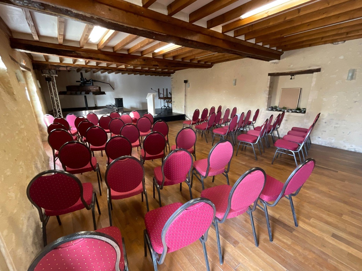 | La salle du Pressoir | Superficie 100 | Disposition en théâtre 70 | Disposition en U 35 | Disposition en Cocktail 90 | Disposition en Banquet 60 | Disposition en Classe 40 | Modulable Oui |