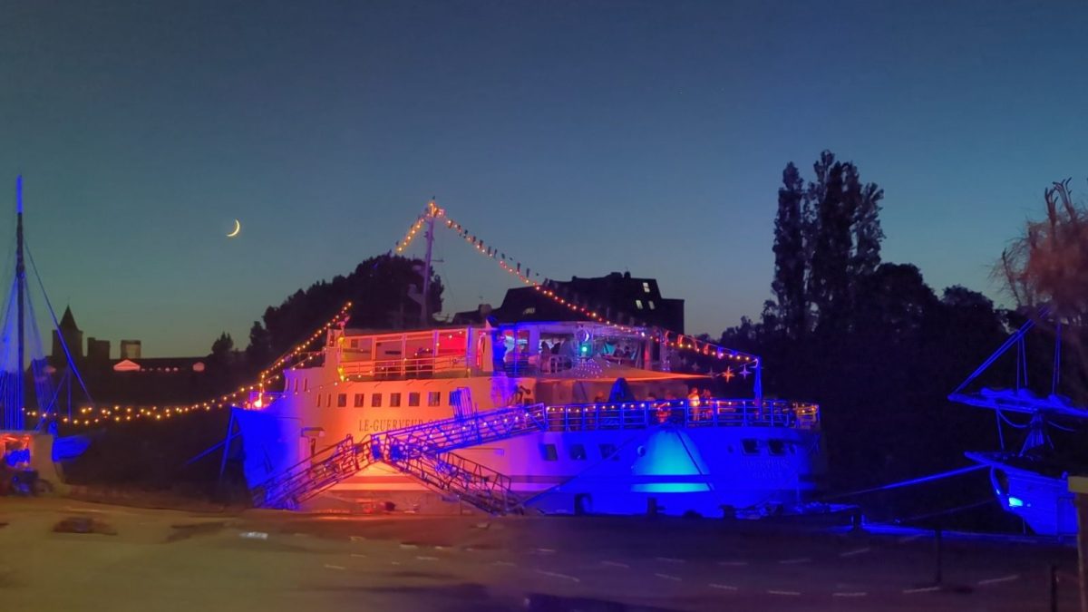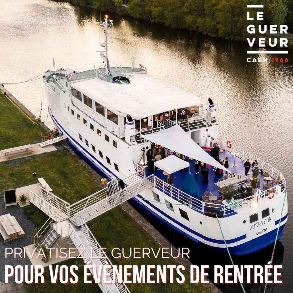 Ancien ferry de Belle-île, le Guerveur a quitté le Morbihan pour s'installer à Caen, quai de Normandie, en juin 2017.