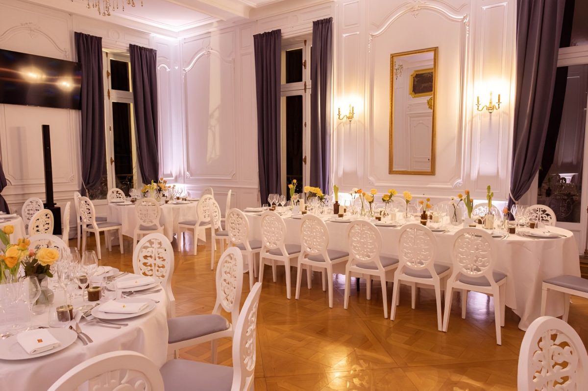 Modulez les espaces selon vos besoins grâce aux 4 salles en enfilades du château d’une capacité de 200 personnes assises. Les pièces communiquent entre elles, ce qui vous permet d’organiser vos évènements avec différents temps-forts. Une salle annexe est également disponible à 20 mètres du château.