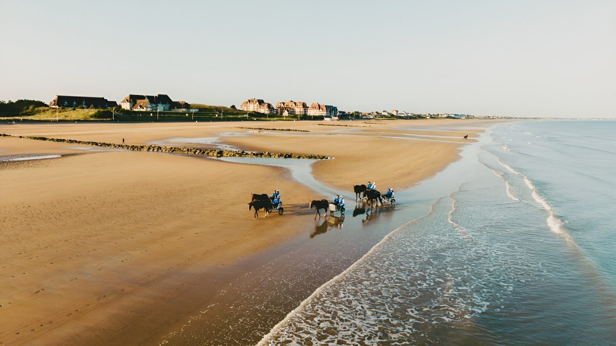 Pour les groupes professionnels, un système de roulement est mis en place pour une expérience sur mesure. Capacité jusqu’à 50 personnes sur la plage ; au-delà, organisation possible aux hippodromes de Cabourg et de Caen.