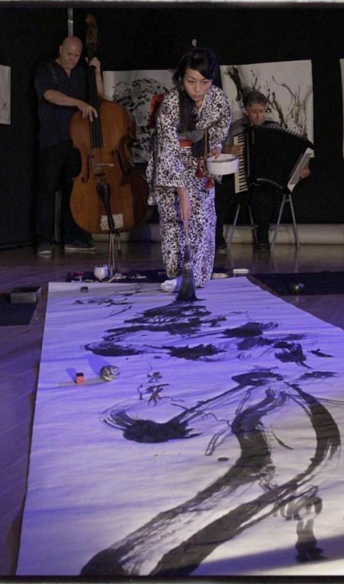 Entre le percussionniste Naoto Yamagishi, la peintre Setsuhi Shiraishi et la chanteuse Guylaine Cosseron, s’opère une belle alchimie au travers de la respiration, du grain, du souffle, du frotté de l’archet ou du pinceau, de leurs partis pris radicaux, absence de soi, présence redoublée et expérimentations harmoniques.