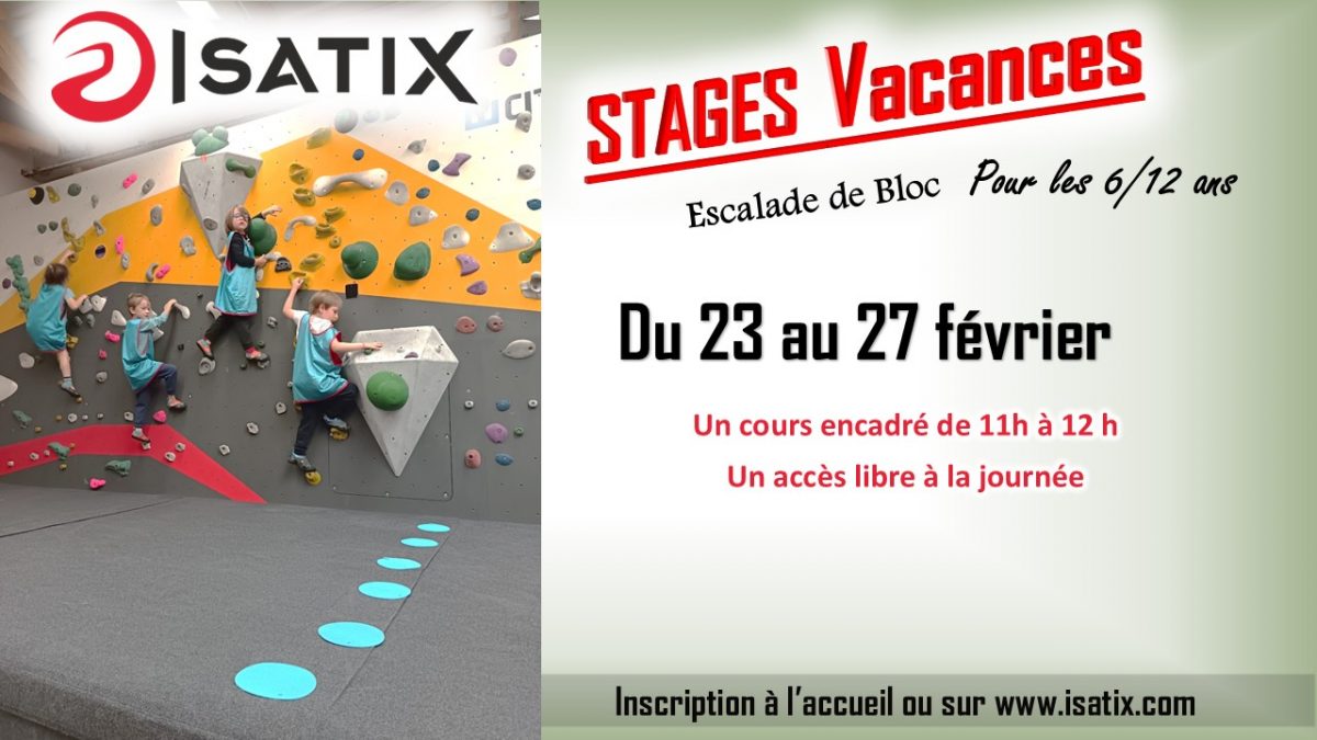 Pendant les vacances de février, Isatix propose des stages de découverte de l’escalade de blocs pour les enfants de 6 à 12 ans.