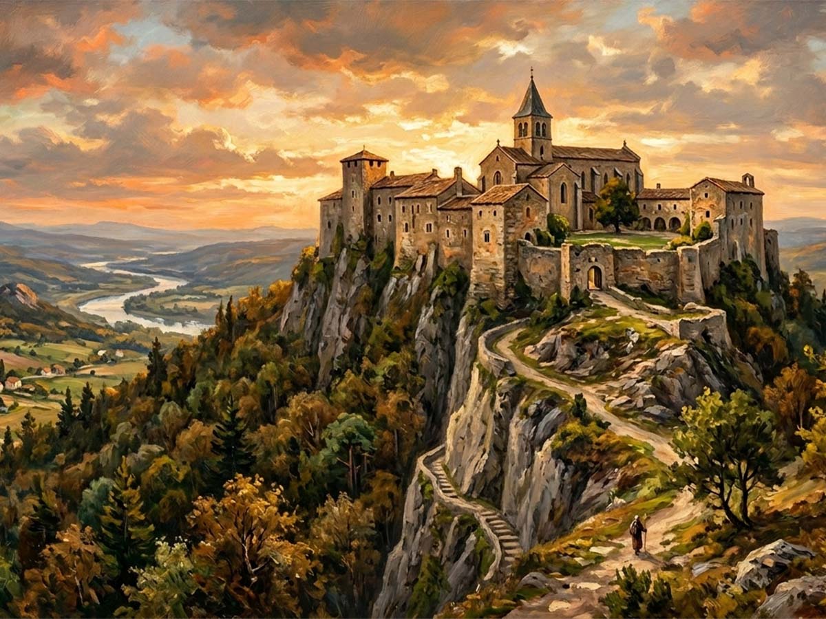 Au bout de la route, le pied de la montagne. Marche par marche, mètre après mètre, il faut épuiser son énergie pour gagner le sommet. Là-haut, une bise glacée souffle et vous pénètre le corps. Vous êtes arrivés. La porte est ouverte. Tout semble désert, vous entrez…