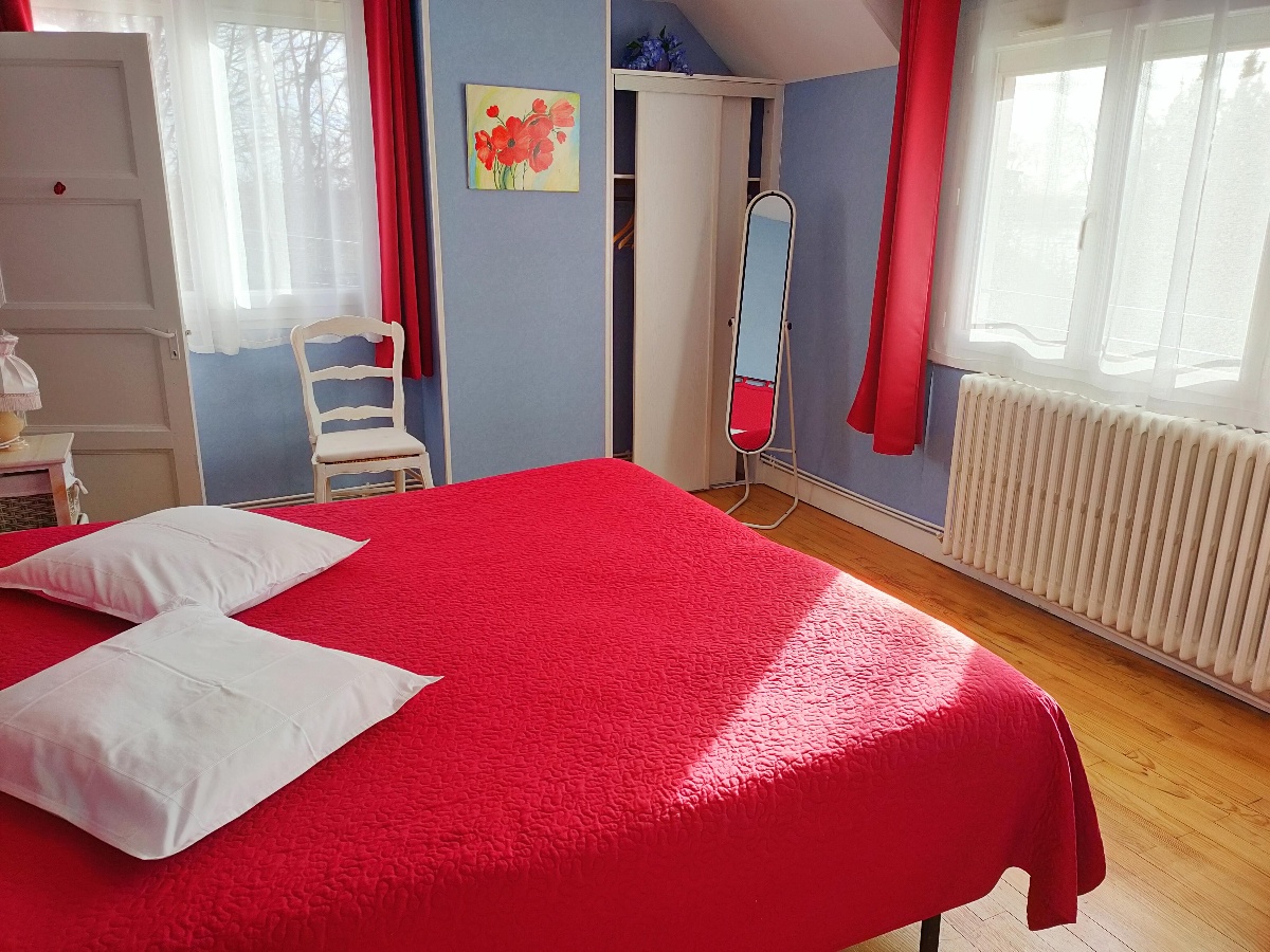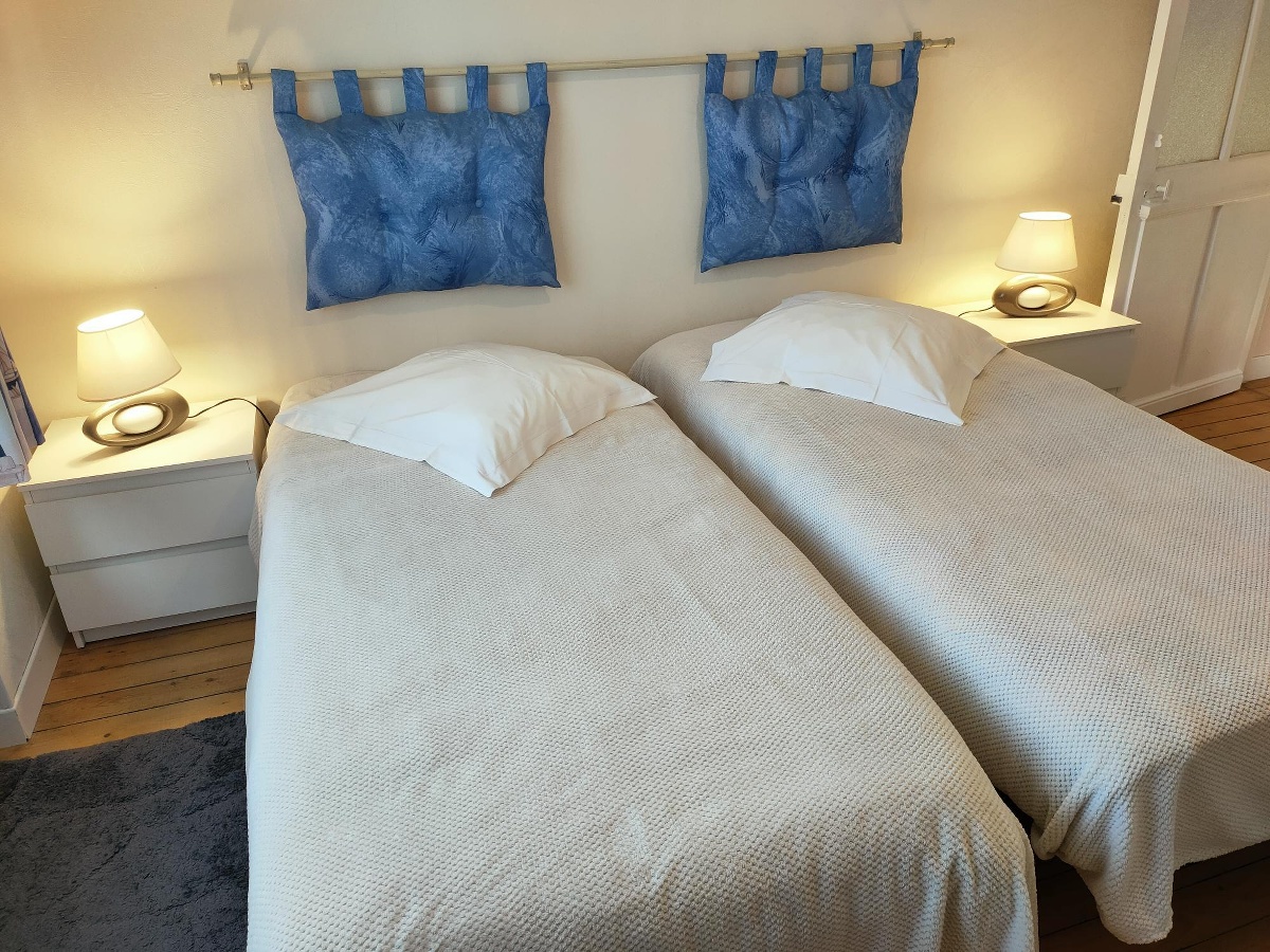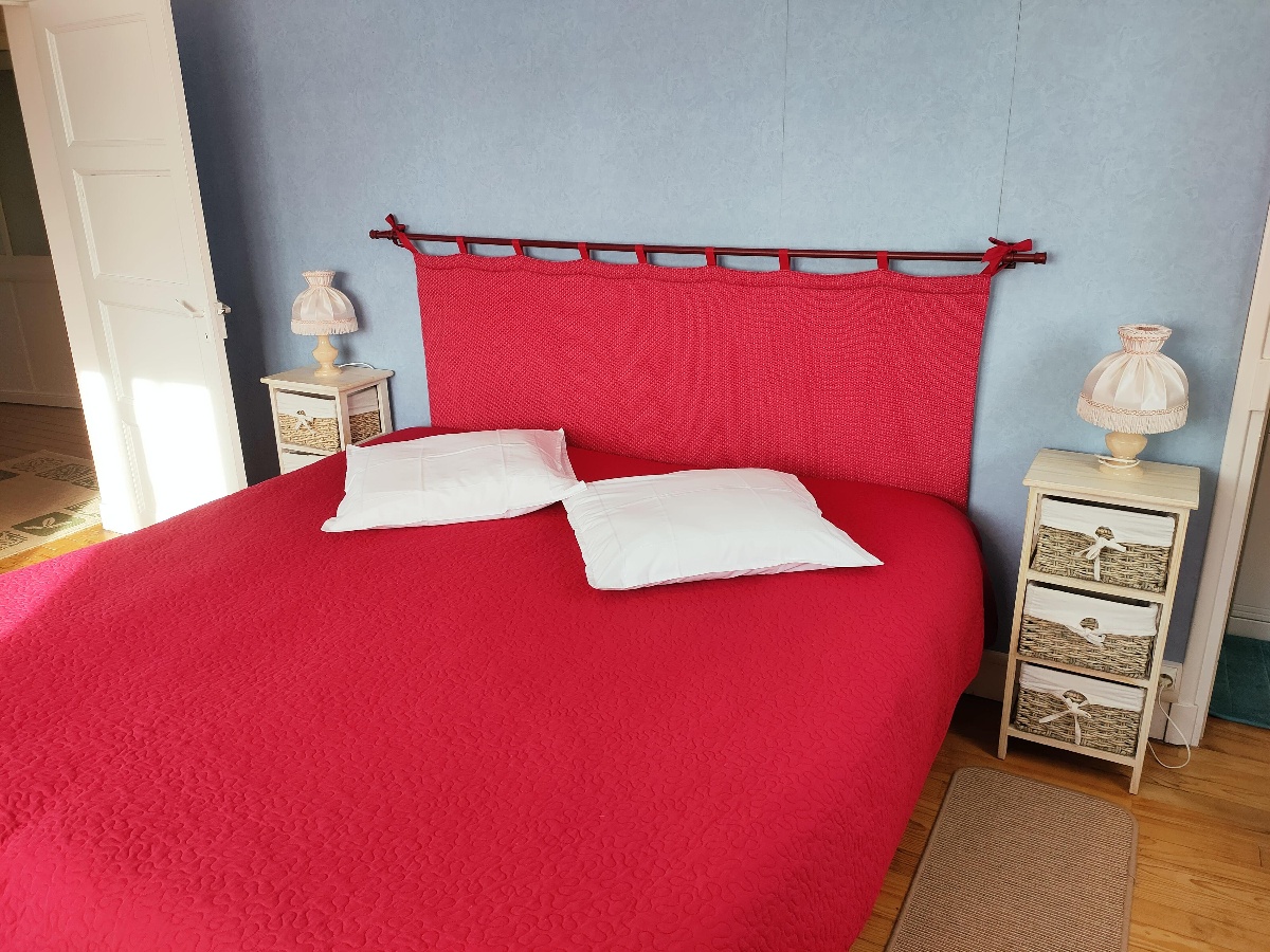Étage : 2 chambres (1 chambre avec 1 lit 140 et 1 chambre avec 2 lits 90) avec chacune un lavabo, WC sur le palier. Draps fournis. Serviettes de toilette non-fournies.