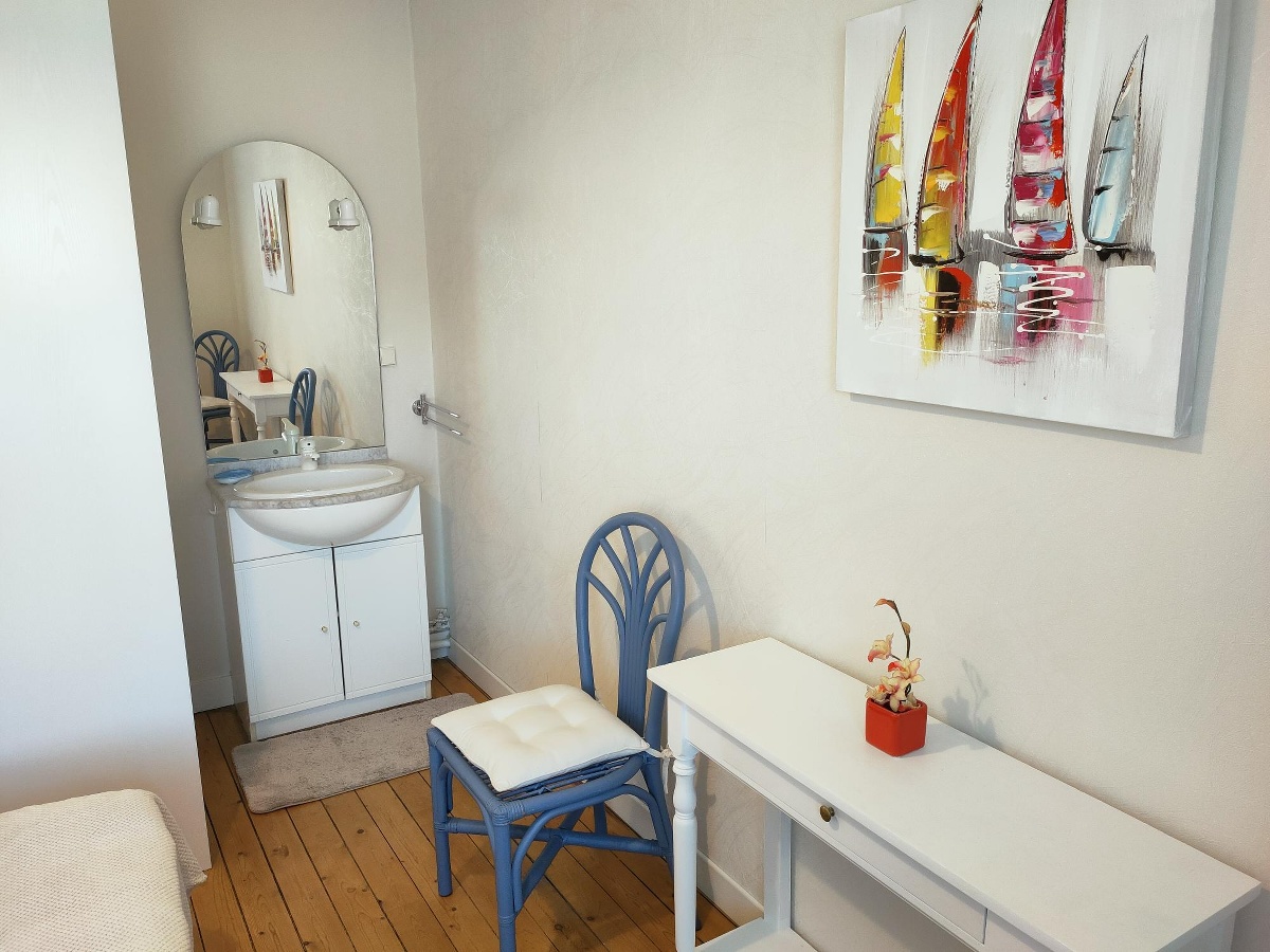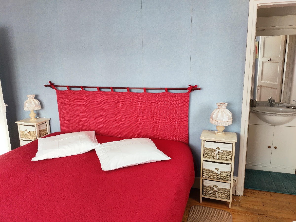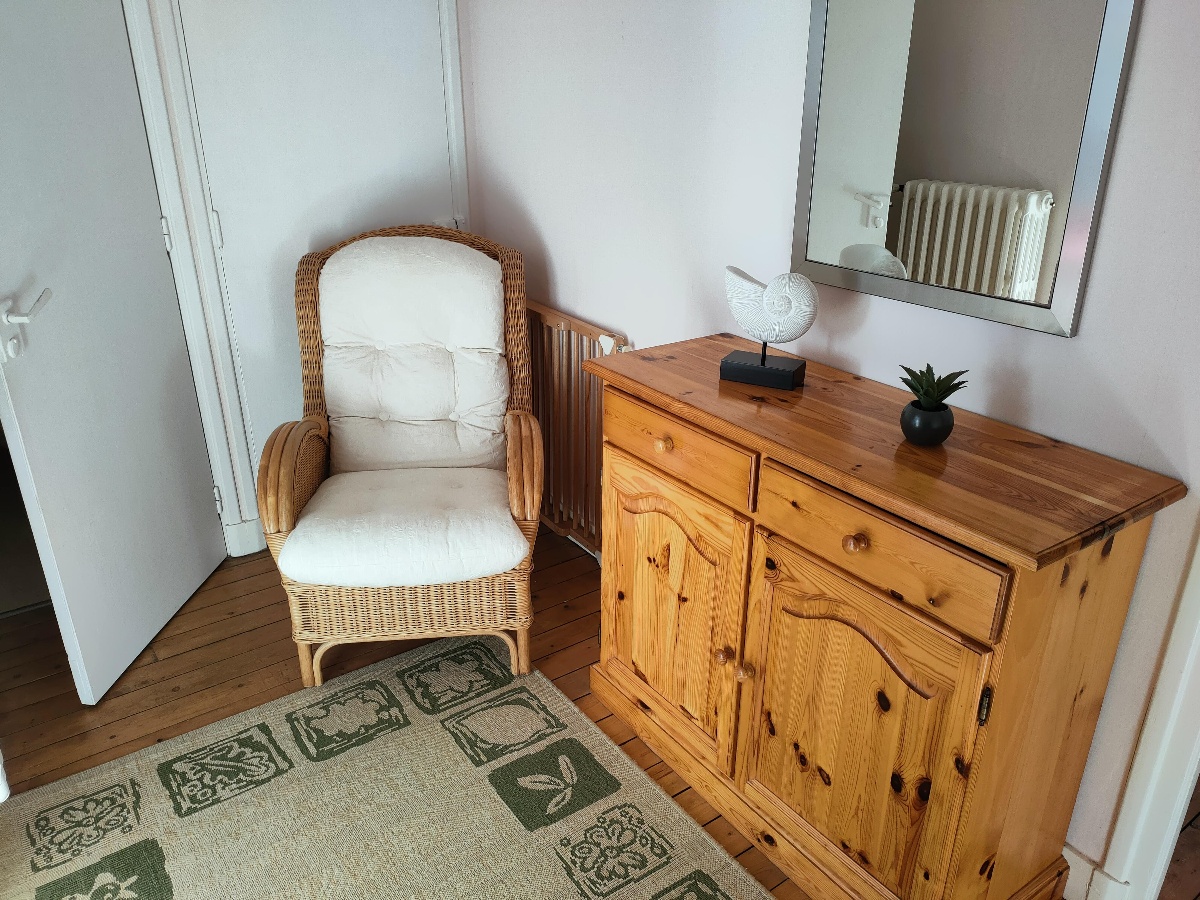 Étage : 2 chambres (1 chambre avec 1 lit 140 et 1 chambre avec 2 lits 90) avec chacune un lavabo, WC sur le palier. Draps fournis. Serviettes de toilette non-fournies.
