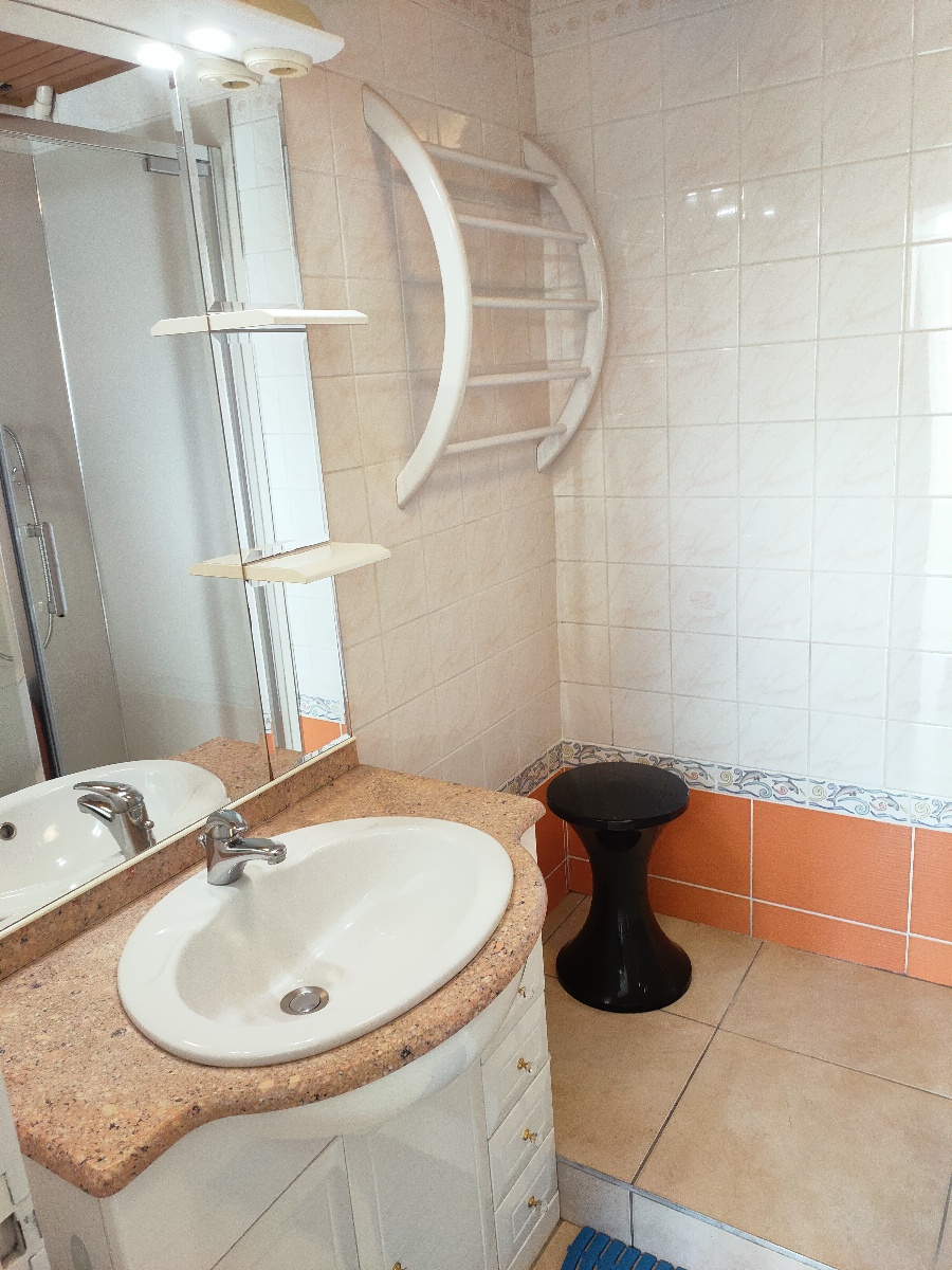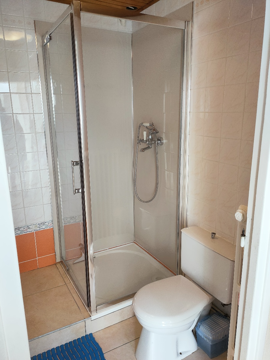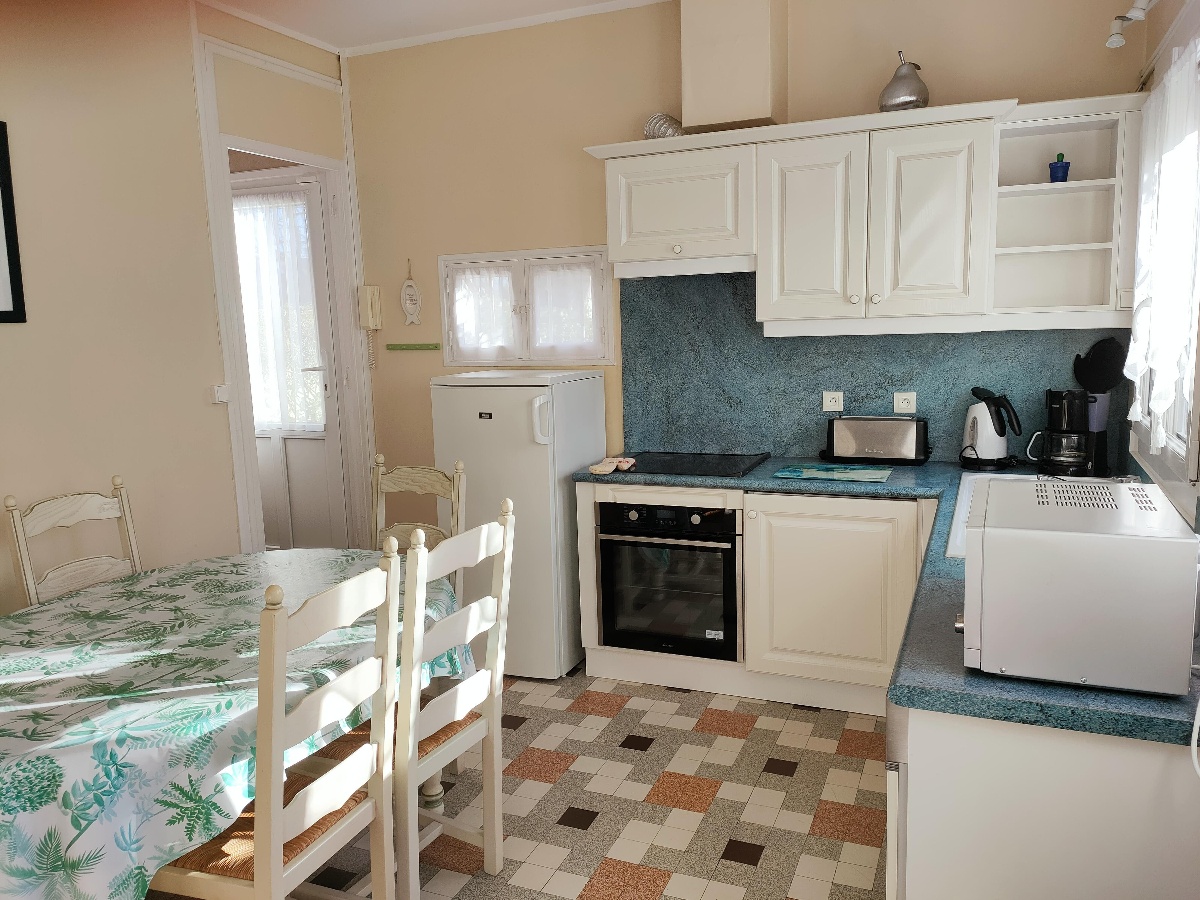 Rez-de-chaussée : séjour, cuisine aménagée et équipée, petit salon TV, salle d'eau (douche) avec WC.