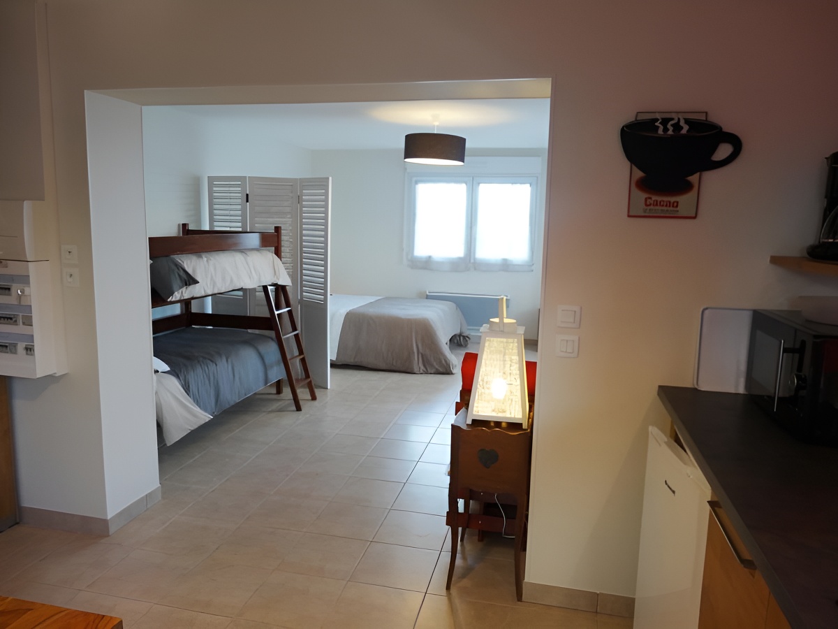 Grand studio au rez-de-chaussée d'une maison comprenant un autre gîte à l'étage.