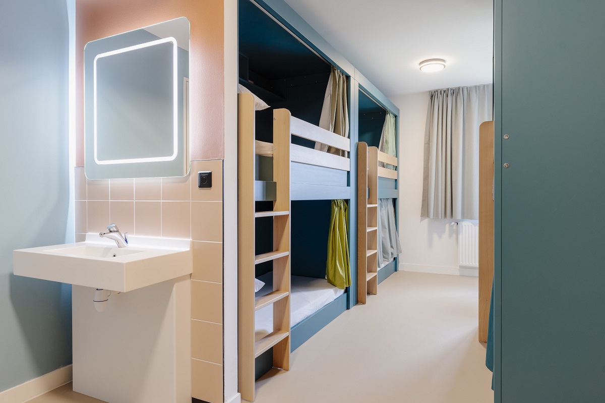 60 chambres de toutes configurations : double, twin, familiale, lit dortoir, dortoir privé, pour un total de 210 lits afin d'accueillir des groupes d'amis ou de familles pour un séjour Caennais.