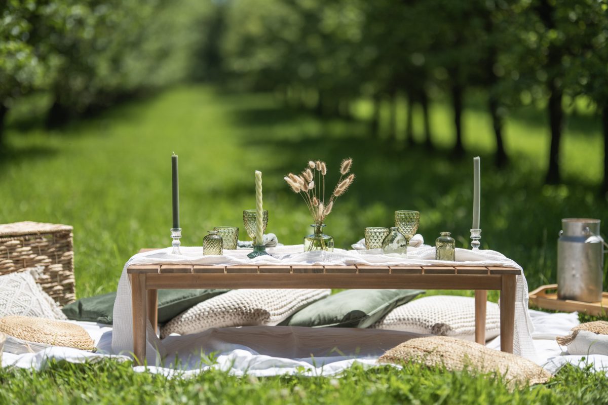 Organisation de pique-niques chics en plein air ou sous bulle.