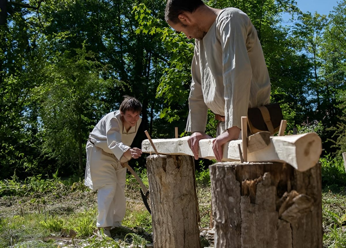 Sur ce chantier d'archéologie expérimentale, des passionnés retrouvent les gestes oubliés. Ils bâtissent, forgent, tissent et cultivent en renouant avec les techniques d’autrefois. Le projet : s’inspirer des découvertes archéologiques Normandes et Scandinaves - Pour construire un village carolingien composé de fermes, de jardins, d’ateliers et d’une église, - Pour retrouver, au sein de l’espace viking, les activités d’un comptoir de commerce dominé par une maison longue de 40 m - Pour rêver devant le château à motte au temps des chevaliers de Guillaume le Conquérant Visitez ce chantier d'archéologie expérimentale, explorez les constructions médiévales et plongez dans l'histoire de la création de la Normandie, de 911 à 1066, de Rollon à Guillaume le Conquérant. Informations pratiques : - Parking gratuit à proximité (environ 5min à pieds) - Restauration sur place en continu pendant les horaires d'ouverture Pendant l'année, le parc organise également des temps forts aux thématiques variées. Ces journées avec animations spécifiques raviront tant les grands que les petits :