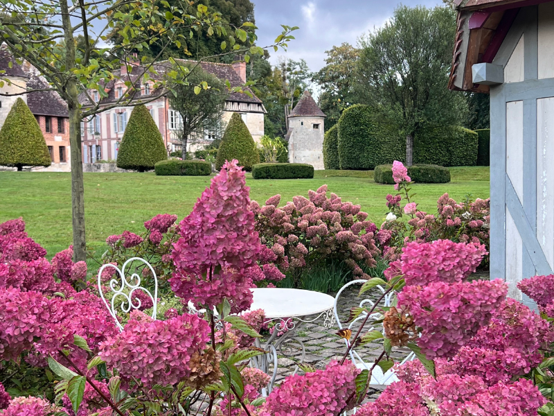 Dans le parc, grimpez sur la motte féodale, ou promenez-vous sous les pommiers à fleurs vers le banc des roses.