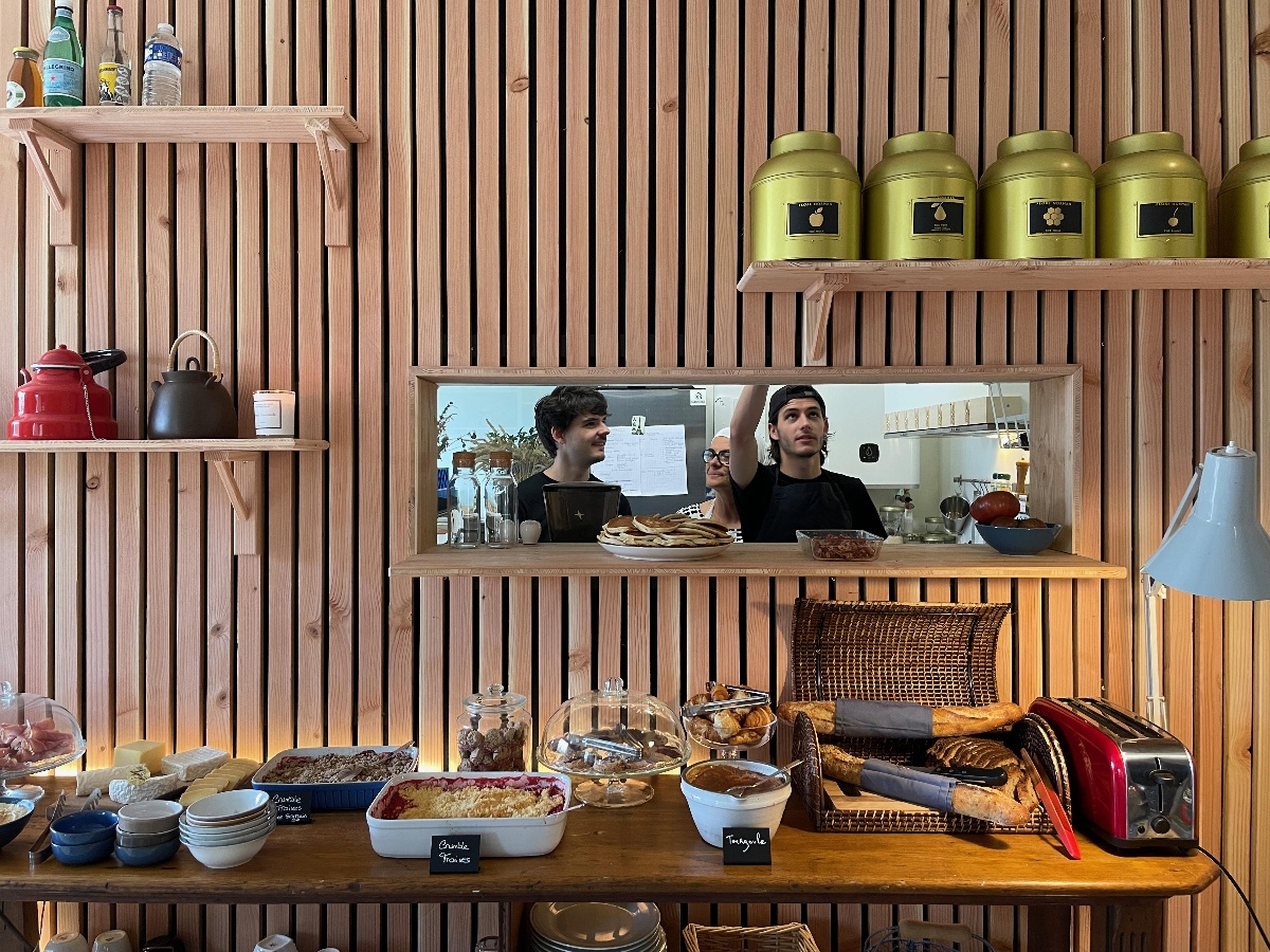 Lors du brunch du dimanche, un buffet complet à volonté vous est proposé. Celui-ci se compose d'une partie petit-déjeuner (pain ultra bon, viennoiseries, beurre, tartinables…), d'une partie salée (charcuterie, fromages locaux), d'une partie sucrée (céréales, gâteaux du jour, pancakes), ainsi que de boissons fraiches et chaudes.